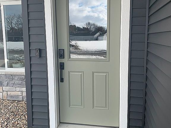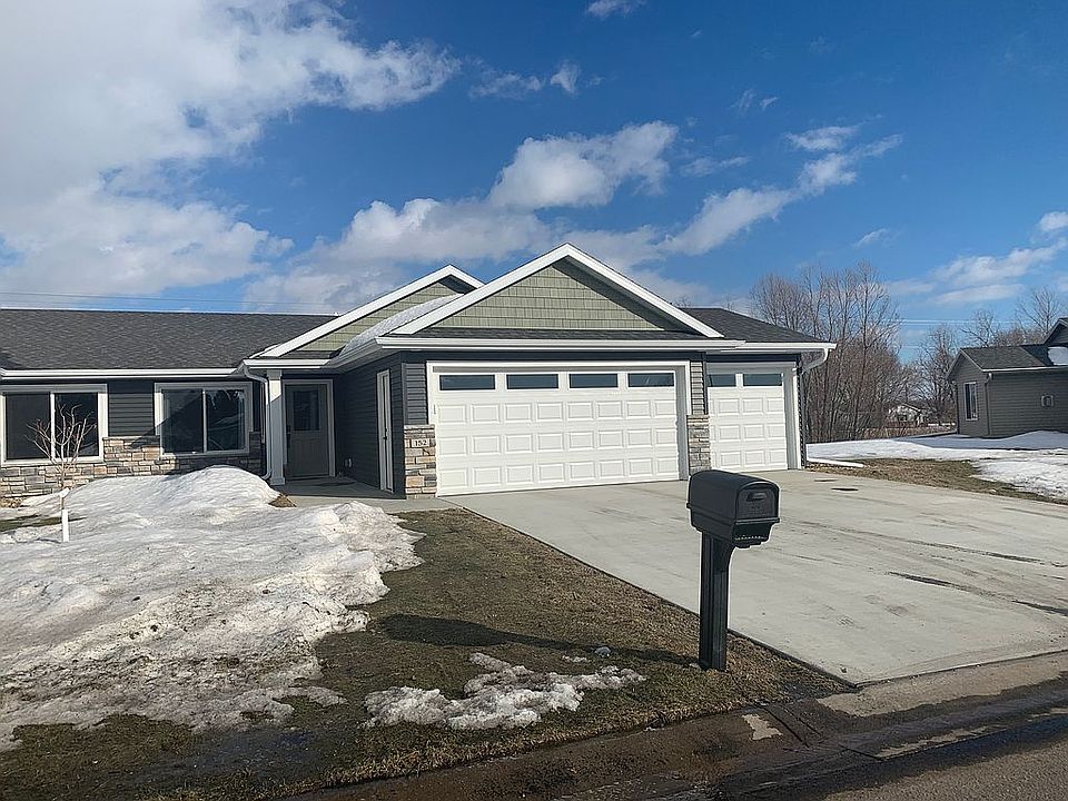 One level townhome build in Nov 2019. Townhome is located in Zumbrota near the golf course. Black, white and grey color scheme throughout. 2 bedrooms both with walk in closets. 3/4 master bath with tiled shower, built in shelves and heated tile floors. Full second bath. Laundry closet with new Samsung front loader washer and dryer. Beautiful kitchen complete with a gas range, single bowl undermount sink and large pantry. Front living room with large windows, ring doorbell and entry closet. The back sunroom has a patio door, gas fireplace, large window with top down/bottom up blackout shades and a door to a second patio. LVP flooring throughout except for the 2 tiled bathrooms. 3 car insulated garage. Smart ecobee thermostat. Townhome has one shared wall. Townhouse is sale for by owner: $264,900. Email to set up a showing or for any additional questions. HOA: $150/month and covers lawn care and snow removal.