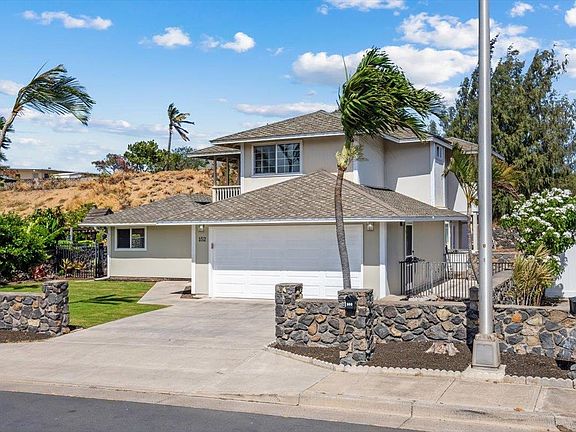 5 Bedroom home beautifully redone in the Grand Fairways at Maui Lani! What more can you ask! This rare find will ensure plenty of space for the large family and entertaining. This home has two large downstairs bedrooms with a large tiled Jack and Jill bathroom. It has both a tub for soaking and a tiled stand-up shower. It also has a large walk-through closet with tons of space. Did I mention both rooms have sliding glass doors for accessing the yard. The open living has room to utilize a variety of seating, lounging and entertaining areas with still enough room for a dining space. The space opens into the sun room adding tons of light and open views of the back yard and built in waterfall. The kitchen has Taj Mahal Quartzite counters with eat at butcher block counter for the quick morning breakfast. Off the kitchen is a half bath for convenience. Laundry area in the entry to the garage makes keeping the linens clean easy. Going up! You have 3 more rooms and two baths upstairs. Two bedrooms separated by the shared hall bath. The large primary bedroom has a very nice his & hers closet with organizers. The primary bath has a soaking tub for winding down the day or stand-up tiled shower enclosure if preferred. Fenced in yard for a safe spot for kids to play or family pets. Did I mention the home has Solar Hot Water and PV Panels. Located just minutes to schools, shopping, parks, dinning, and golf. Find your favorite realtor and schedule a private showing of this rare find in the middle of Kahului.