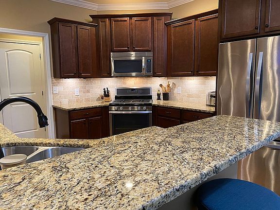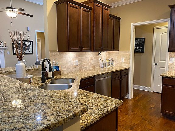 Corner lot with circular drive. Beautiful brick home with 4 bedrooms and 3.5 baths, large eat in kitchen with breakfast nook and bar. Kitchen has stainless steel appliances plus granite. Master has a walk in shower and soaking tub, plus walk in closet. New gas water heater 2020. Price includes counter depth refrigerator and washer/dryer. Will coop.