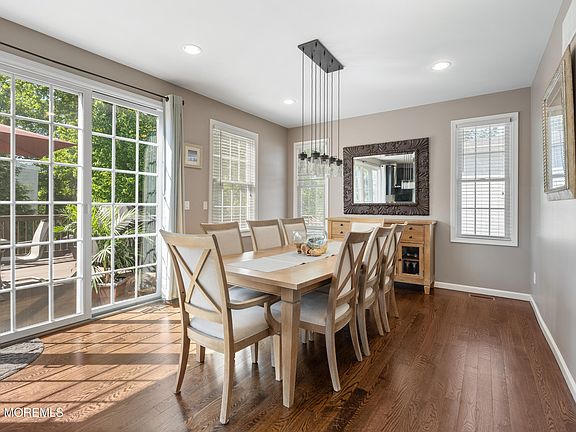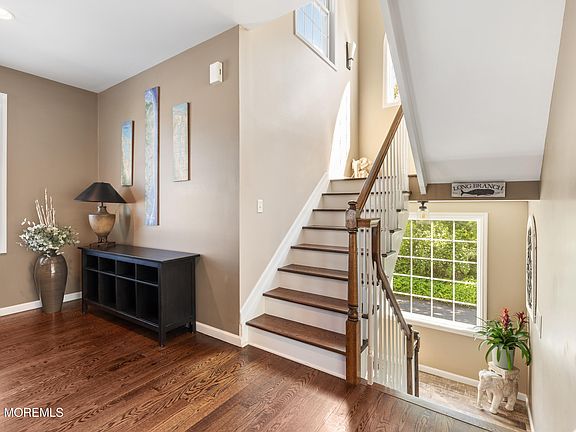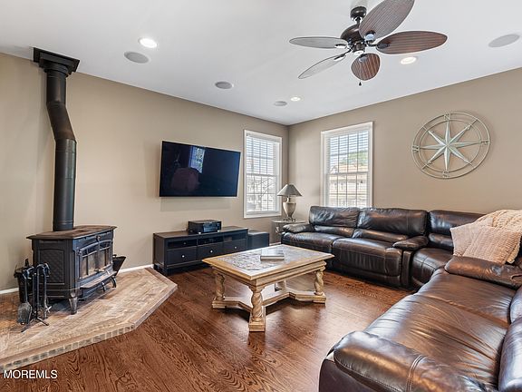 Located in highly sought-after North Long Branch, this beautifully maintained 10-year-old home is less than a mile from the beach. Featuring an open and airy first floor with gleaming hardwood floors and 9-foot ceilings, this home is perfect for both relaxation and entertaining. The modern kitchen with newer appliances seamlessly flows into a spacious deck (16' x 24') with sliding glass doors, offering a fantastic outdoor space with a grill, fire pit, and ample room for gatherings. Upstairs, the home features 3 generously sized bedrooms, including a Primary Suite with a vaulted ceiling, walk-in closet, and an ensuite bath. The second floor also boasts a second full bath and a convenient laundry area. The ground offers a 400 sq ft bonus with French doors that open to a new 6 person hot tub The oversized one-car garage is equipped with built-in cabinets and a workbench, offering plenty of storage and workspace.