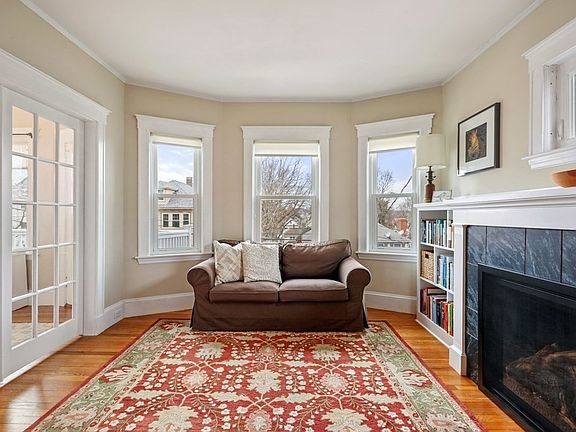 Treetop views, character and light flood this lovely two bedroom plus condo atop Met Hill. The owners have taken exceptional care of this home, adding custom bookshelves, a gas fireplace, custom shelving, gardens and more. This flexible floorplan flows from the living area through French doors to a bonus nursery or office space and balcony access. There is a second living/dining area with built-in hutch and open eat-in-kitchen with pantry and access to the private back deck. There are two spacious bedrooms, ample closet space, fir and oak floors throughout and the original doors and trim are in wonderful condition. Out back you'll find a garden oasis with a beautiful bi-level yard and mature plantings. There is a freshly paved driveway that provides one parking space, a basement with washer/dryer, storage and shelving. This 2 unit association is well run, pet-friendly and offers a low HOA fee. All this is only half a mile to the commuter rail, or shops and restaurants in Rosi Village.