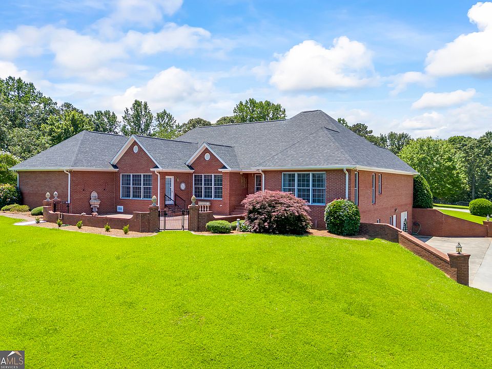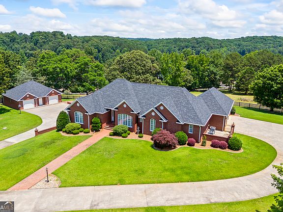 Hilltop Elegance Meets Lakeside Living - A Distinctive Estate for the Discerning Buyer Perched atop a gentle hill with seasonal views of Lake Hartwell, this stately brick residence offers the rare combination of refined luxury, serene pastures, and exceptional garage space for collectors and car lovers alike. A private gated entrance leads you through manicured landscaping and fenced acreage, setting the stage for an estate that promises privacy, space, and timeless craftsmanship. Step inside to soaring 10+ foot ceilings, gleaming hardwood floors, and sun-filled living spaces designed for both grand entertaining and comfortable daily living. The thoughtfully designed main level features a spacious owner's suite with a spa-inspired bath-complete with dual vanities, jetted tub, walk-in shower, and custom closet. Two additional guest suites, each with private baths and generous closets, provide comfort and style for family or visitors. From the formal dining room to the elegant office space, cozy sun, sitting and living rooms, every inch of this home exudes warmth and sophistication. The gourmet kitchen is a chef's dream, outfitted with custom cabinetry, granite countertops, a breakfast bar, built-in refrigerator, dual wall ovens, and a separate cooktop. An adjoining breakfast room flows seamlessly into the main living area for everyday gathering. The finished terrace level adds a full second living space with its own kitchen, bedroom, bathroom, living area, and flex room-ideal for extended family, guests, or a home gym or even a home theater. A generous unfinished area remains for future expansion, extensive storage needs or great place for seasonal decor. This home has tons of custom quality built features that are not often offered in todays build homes. And for the automobile aficionado-this estate delivers. In addition to the main-level 3-car garage and a lower-level single car garage/storage area, the detached 2-car garage is a standout feature, complete with climate control and its own bathroom-perfect for housing prized vehicles, workshop space, or boat storage. It's oversized, plenty of space for your desires. Plus the shed areas on the back side for equipment or could be used for livestock stall/sheds. Outdoors, entertain on the expansive brick patio or gather around the separate firepit patio just steps from the detached garage. Watch horses graze in the pasture or enjoy the distant glimmer of the lake- Franklin County Boat Ramp is walking distance just around the corner. Whether you're seeking a mini-farm, multigenerational retreat, or a private oasis with room to breathe, this one-of-a-kind estate offers a lifestyle that is both elevated and effortless. A rare blend of craftsmanship, land, and location-this is the hilltop haven you've been waiting for.