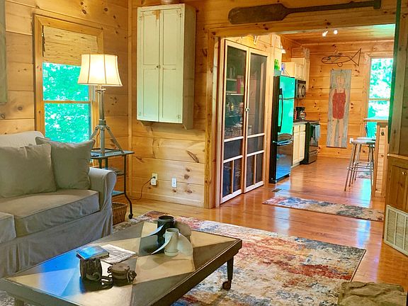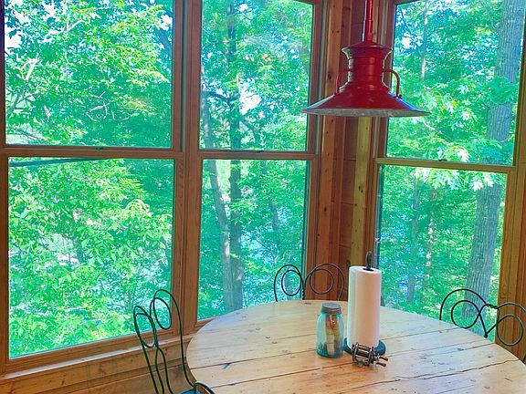 Ultimate Lake Retreat with tons of privacy, dock in place and the BEST swimming hole in a DEEP WATER cove. This Awesome Artist's home is on 3 Lots and has been super cared for!!! The expandable cabin boasts high pine ceilings and walls and floors as well as amazing outdoor spaces. It's a must see!!