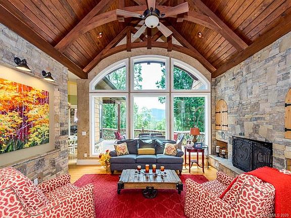 Spectacular waterfront home of superior quality by Judd Builders of Asheville. Impressive architectural details & luxury features inside and out. Soaring vaulted ceilings and expansive windows capture mountain views; stone work, tall doors & high ceilings thru-out. Chef's kitchen features 6 burner Kucht professional gas stove w/grill & dbl oven, pot filler, Sub-Zero fridge, walk-in pantry, large granite island. Open floor plan flows from kitchen to living room, family room, dining areas and deck. Bedrooms on all three levels including 4 en-suite bedrooms and 2 bedrooms w/shared bath. Main level master bath is like stepping into a spa w/oversize, 2 door multi-head shower. Your own Theater Room to enjoy movies in. Huge recreation room with separate areas for billiards, card games, and exercising. Outdoor areas are just as fabulous with a stone fireplace on the Trex deck, built-in grill, fridge and fire pit. 3 car garage. Gated community. Deeded boat slip. 2017 pontoon boat included.