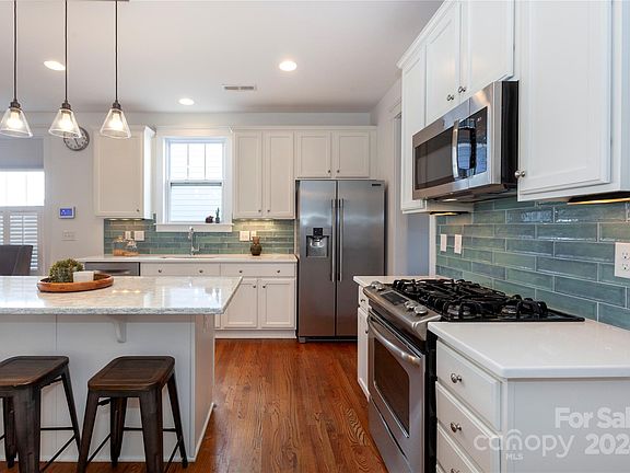 Easy one-level living in this bungalow w/rocking chair front porch in popular Davidson Pointe, a waterfront community on the shores of Lake Davidson. Inside, there's a great home office/dining option which leads to a remodeled kitchen. It has white cabinetry, quartz countertops w/accent island, designer tile backsplash & stainless appliances. There are two pantries, & more custom built-in storage/shelving. From there, the dining area opens to the living room w/tray ceiling & fireplace. The primary suite is on the back, w/bath w/double vanity & soaking tub, plus a customized walk-in closet. There are two more bedrooms, & another bath at the front of the home. Hardwood floors & tile throughout, along w/plantation shutters and shades. Covered breezeway connects the spacious, attached two-car garage. Amenity-filled community w/pool/cabana, canoe/kayak launch and incredible sunsets from the common area. Convenient access to downtown Davidson, and back to I-77. Welcome home!