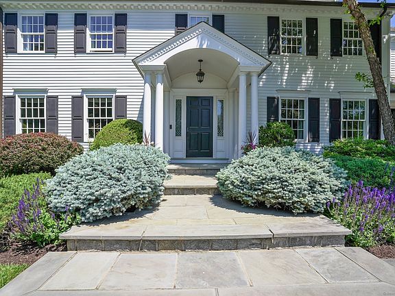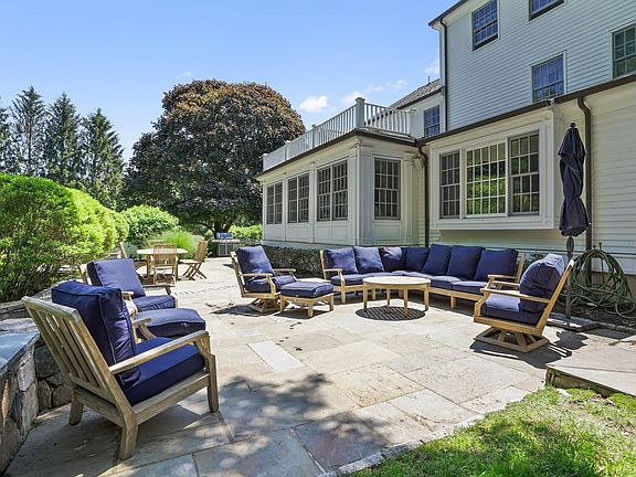 Welcome to 152 Long Lots ~ Perfectly sited on two flat acres in the highly sought after Hoyt Farm neighborhood. This home is a rare blend of timeless design and thoughtful scale. The interior is filled with natural light and symmetry which guides you through elegant, functional spaces designed for both everyday living and entertaining. The gourmet kitchen is the heart of the home featuring a wall of windows, top of the line appliances, and the perfect setting for dining in. The primary suite offers a private balcony updated bathroom and shared walk-in closet. The outdoors is equally impressive with a beautiful private patio and mature plantings. Convenient to schools, train, parks and New Canaan town center.