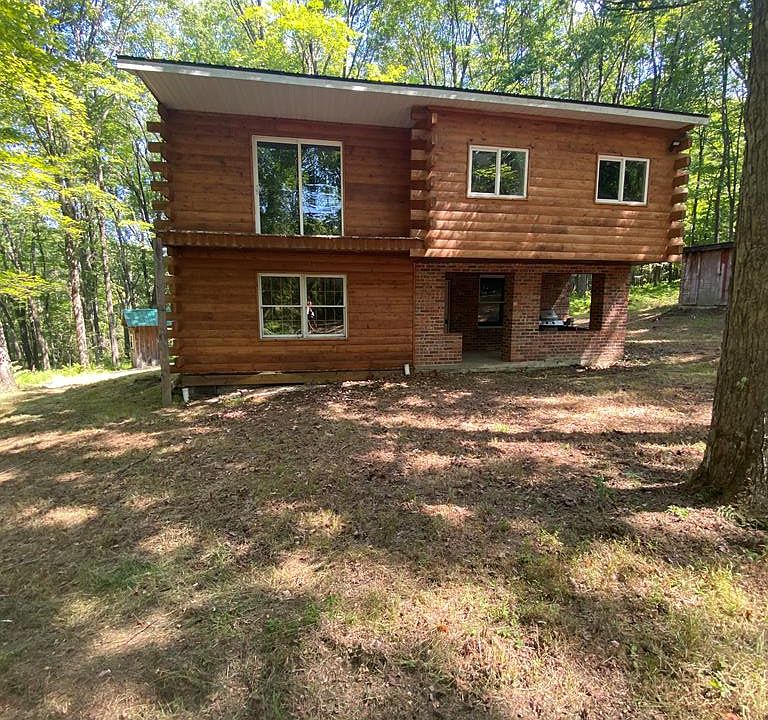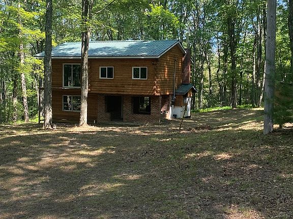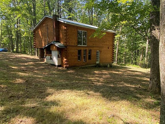Beautiful wooded property with a great camp just waiting for your finishing touches. Has a wood burning fireplace in the living room that extends to a very spacious kitchen area. Main floor full bathroom with a rustic look of aged barn wood and metal. The second floor has three nice sized bedrooms, one with a morning deck in place and sliding glass doors. There's a large common area that can be a additional living room or converted into a fourth bedroom. The common area has sliding doors that is ready for a deck to be built. There is a additional full bathroom on the second floor and a laundry room that has been finished in cedar. Come make this place yours and enjoy making memories nestled back in the forest.