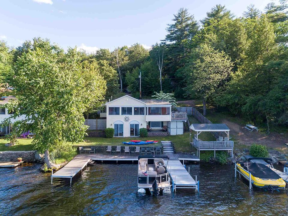 Looking for a well maintained year round waterfront property? You just found it! This home offers 75' of owned frontage on beautiful Northwood Lake! This property offers open breathtaking panoramic views of the 650 acre lake from both levels of the home, the expansive deck not to mention the "Tiki Bar" other features include 4 bedrooms, Cathedral ceilings, loft area, detached "Cabin" for teenagers or guests to sleep, an enclosed screened porch to catch some shade and to enjoy the sounds of the Loons at night, 2 owned dock, shed for storage and endless number of trails for ATV and Snowmobiles for year round fun. This is a fantastic opportunity to build years of memories do not miss out on this one!