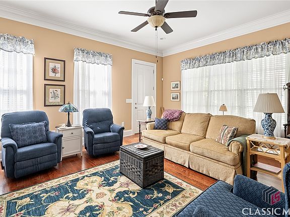 If convenience is what you seek, look no further than Cottages at Homewood! This well-maintained home offers newer big-ticket items. Since 2016 the roof, both HVACs, and most appliances have been replaced. The serene, screened porch is sure to please most of the year and was added in 2017. The cherry on top-this home has just been painted outside! This brightly colored Charleston-style cottage offers 3 bedrooms and 3 full bathrooms plus laundry on both floors. The gleaming hardwood floors throughout the main floor are lovely. A sunny Great Room features a gas-log fireplace and is open to the Dining Room. The rear of the home offers an eat-in kitchen with pantry plus a rear hallway to the guest bedroom, bathroom and 2 car garage. Upstairs you'll find a spacious owner's suite with loads of natural light, 2 double closets, a jetted tub, tile shower and double vanity plus an additional bedroom/bathroom suite. This community includes sidewalks and nearly 20 acres of greenspace with walking trails plus your HOA fees take care of cutting your grass and annual pine straw refresh. Amazingly convenient to the new Publix shopping center, Loop 10, Bishop Park-hello farmer's market, Normal town and Downtown.