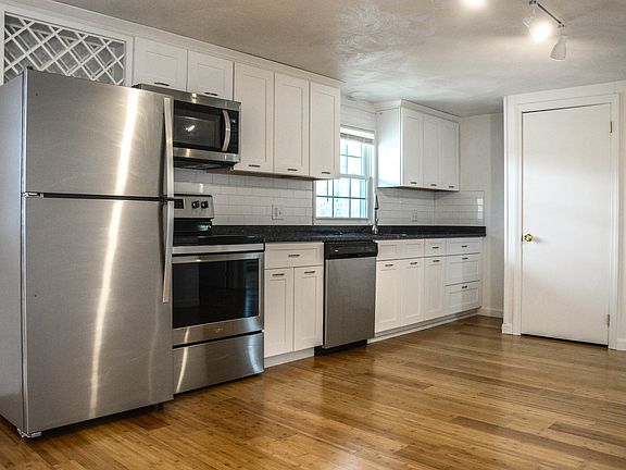 This first floor, two bedroom apartment features an open layout. The kitchen is fully equipped with stainless steel appliances (range, refrigerator, microwave, dishwasher, garbage disposal, ice maker) granite countertop, and soft close cabinetry. The living room has a 8' x 10' balcony space through a glass slider. Bedrooms are 11' x 12' and 11' x 12' with large closet space. The bathroom has a tiled floor and rain shower with a vessel sink, and a granite topped vanity. There is tile, plank flooring, and LED lighting throughout. All windows and doors are double insulated. An air conditioning unit located in the living room is included. This property also has an on site laundry facility. FEES First & Security deposit (equal to first months rent.) $250 Lock & key fee. UTILITY RESPONSIBILITY Resident - Electric, cable & internet. Owner - Water, sewer, waste, recycling & snow removal. PET POLICY Cats are welcome. 1 Year Lease