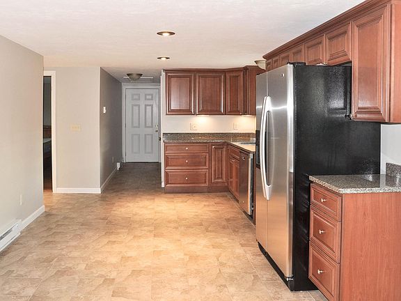 This second floor, two bedroom apartment features an open layout with a private entrance, and storage room included. The kitchen is fully equipped with stainless steel appliances (range, refrigerator, microwave, dishwasher, garbage disposal, ice maker) granite countertop, and soft close cabinetry. The living room has a 8' x 10' balcony space through a glass slider. Bedrooms are 14' x 14' and 12' x 12' with large closet space. The cathedral ceiling bathroom has a tiled floor and rain shower with a vessel sink, and a granite topped vanity. There is tile, hardwood flooring, and LED lighting throughout. All windows and doors are double insulated. An air conditioning unit located in the living room is included. This property also has an on site laundry facility. FEES First & Security deposit (equal to first months rent.) $45 Lock & key fee. UTILITY RESPONSIBILITY Resident - Electric, & internet. Owner - Water, sewer, waste, recycling & snow removal. PET POLICY Cats are welcome.