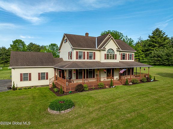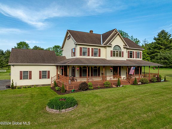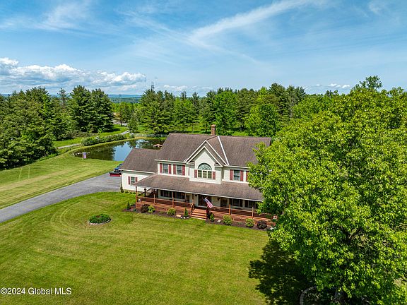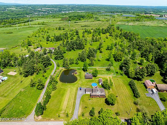 This custom-built farmhouse is set on a sprawling 14-acre estate & in the Fonda-Fultonville SD! Rare opportunity to earn income yearly from Solar contract & potential w/3 stall barn w/water & electric, electric fenced paddock & 10 acres of pasture! This meticulously maintained home offers 4BR/2BA w/the perfect blend of modern amenities & county charm. Nestled on a private road yet 3 mins outside the village of Fultonville & NYS thruway & 30 mins to Great Sacandaga Lake. Large kitchen w/island & breakfast nook, HW floors & Pella windows. Primary BR w/large walk-in closet. Entertain in the FR or in finished basement w/exercise room, bar & pool/ping-pong table. Enjoy the wraparound porch, deck, pool, raspberry & strawberry gardens & a stocked & serene pond that adds to the tranquil setting.