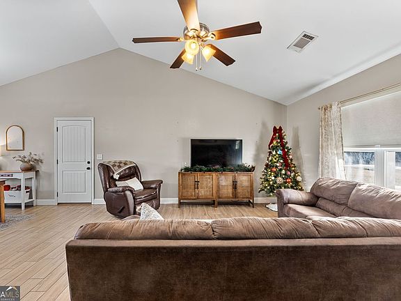 This adorable 3 bedroom/2 full bath ranch home in the heart of Milner may just be the one you've been waiting on! Super low maintenance vinyl sided ranch home with a large and level yard, offering a large fenced backyard. Home is in great condition and offers hardwood-look tile floor throughout, except the bedrooms, which are carpeted. Enter under a covered front porch to find an open living concept featuring a soaring vaulted ceiling, family room with coat closet and accent wall with organizer hooks, dedicated dining area, and spacious kitchen with large breakfast bar for additional seating, gathering, and entertaining. The kitchen offers plentiful wood tone cabinetry a pantry, a breakfast bar that easily seats four, and all appliances stay, including the refrigerator. The primary suite also features two separate closets (one walk in) and it's own private ensuite bath. The laundry closet is spacious and deep, has shelving, and a barn door entry. Outside you'll find a rear patio and fully fenced level and large backyard with a storage building. There's also a one car attached garage with automatic opener and the garage refrig stays too! The home is on public water and sewer and high speed internet is available too. Located in the sweet and quiet town of Milner, with easy access to Hwy 16, Hwy 36, Hwy 41, and I-75 for commuters. Visit the local small business dining in town, the sweet city park and walking track (where many community events are held). This sweet home won't last long! Come see!