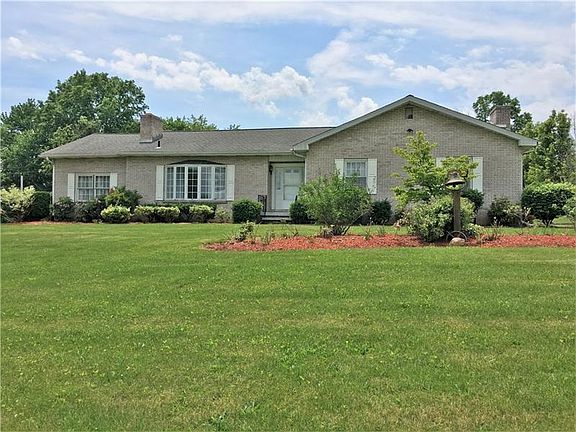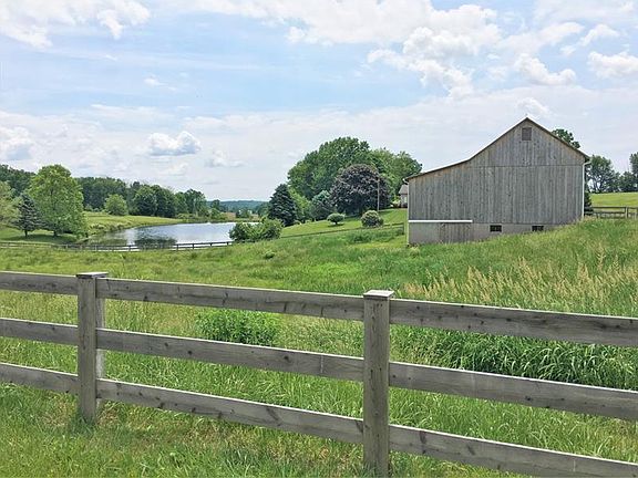 Exquisite country living. This quality custom built sprawling ranch is situated on an 11.4 acre gentleman's farmette offering picture perfect panoramic views, gorgeous spring fed lake, riding arena, pasture and 2 story barn. The living room welcomes you in with a stone 2 way gas fireplace shared by an adjacent den. Other features include: Large galley kitchen with breakfast room and formal dining room, a finished walk up basement features a full bar and spectacular stone fireplace, game room, full kitchen, full bath and wine cellar. 2 car attached garage. HSA Home Warranty.