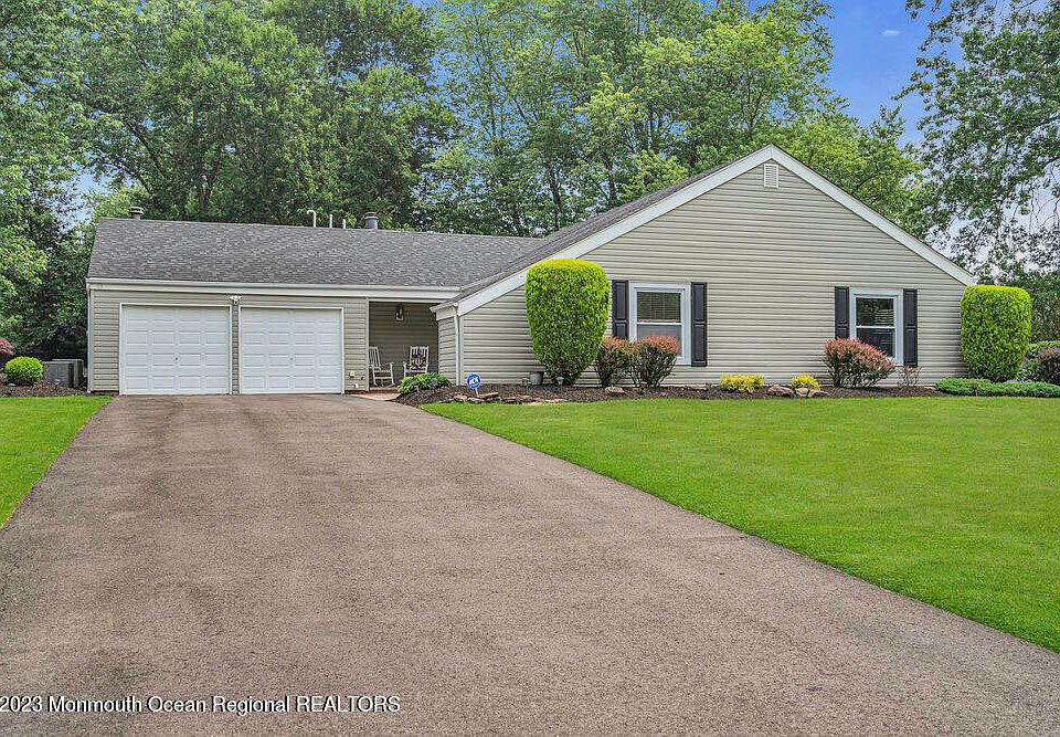 IN THE DESIRABLE CONTEMPRA SECTION OF MONMOUTH HEIGHTS,DON'T MISS THIS 5 BDRM,3 FULL BATH EXPANDED&UPDATED ARIZONA RANCH SITUATED ON OVER 1/2AC OF PARK-LIKE PROPERTY&OFFERING 2 MASTER SUITES IDEAL FOR IN-LAWS.FEATURING A BRICK PAVER PORCH W/COVERED ENTRY THAT LEADS TO DBL DOORS W/NEWER STORM DOORS,24'' PORCELAIN TILE FLOORS,GORGEOUS CONTEMPORARY KITCHEN W/CUSTOM CABINETRY&QUARTZ COUNTERS,LIVING RM W/VAULTED CLG&FIREPLACE,EXPD'D FAMILY RM W/NEWER LAMINATE FLRS,MASTER BDRM W/VAULTED CLG,LARGE WALK-IN CLOSET&DRAMATIC BRAND NEW MASTER BATHROOM(JUST COMPLETED)W/STYLISH TILE,VAULTED CLG W/SKYLIGHT,PLUS AN ADD'L MSTR BDRM SUITE.NEWER 2-ZONE HEAT/AIR&HWH('22),NEWER ROOF('21),NEWER DECK,NEW GARAGE DOOR OPENERS,VINYL SIDED EXTERIOR,UPDATED ADT SEC SYS,RECESSED LIGHTS. 1 YEAR HMS WARRANTY FOR BUYER