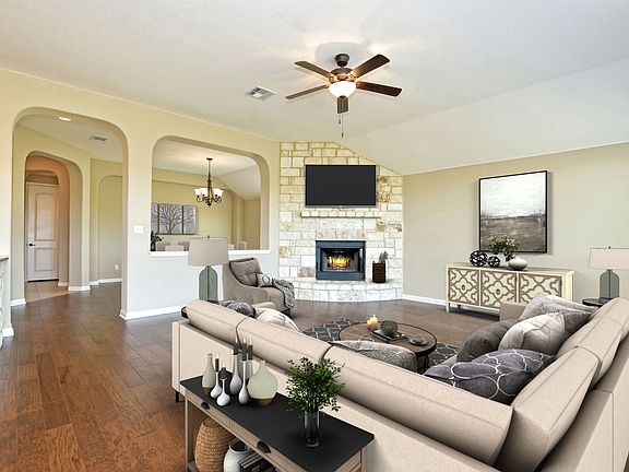 Rare opportunity in the exclusive gated section of the Estates at Stonewall Ranch! Enjoy serene panoramic views, Texas sky and nature from inside the open and bright floorplan or out on the raised covered patio. 2,803 sq ft, 4 bedroom with 1+ acre lot. Award winning Giddens Builder created this gracious home with features galore. Liberty Hill School Dist. Reduced and motivated.