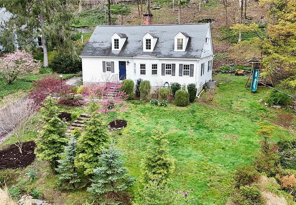 Fabulous charming cape in the heart of Chappaqua, just minutes to town center, train, shops, restaurants, farmer market, 47 min to Grand Central. From the main entrance enter a spacious first-floor living room with a wood-burning fireplace, an updated custom kitchen with stainless steel appliances, and a formal dining room. There is also a bedroom on the first floor, a full bathroom with a tub. Second floor with high ceilings: primary large bedroom with walk out to a private deck, second bedroom, walk-in closet, full spacious bath with marble countertop, "Restoration Hardware" medicine cabinet, and standing custom shower. Many updates have been made.