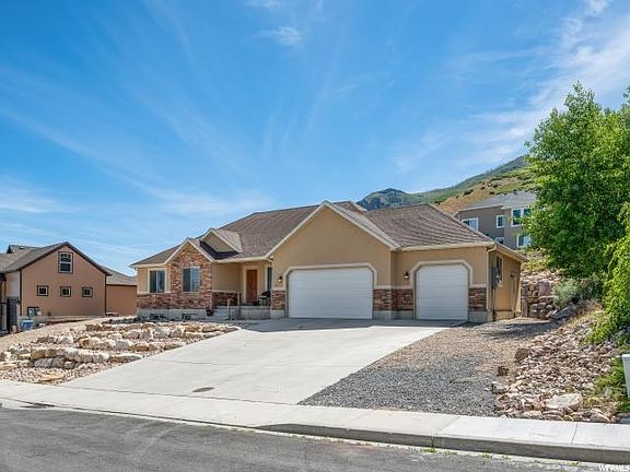 This amazing home is nestled on the east bench of Santaquin. Talk about awesome mountain and valley views. The large 3 car garage and RV parking on both sides of the home make it easy to park your toys. Beautiful tiled showers and tub surround. Kitchen is also large and flows right into the vaulted living room. Fridge, washer, and dryer included. New roof. New water heater. Don't miss out on the beautiful home!