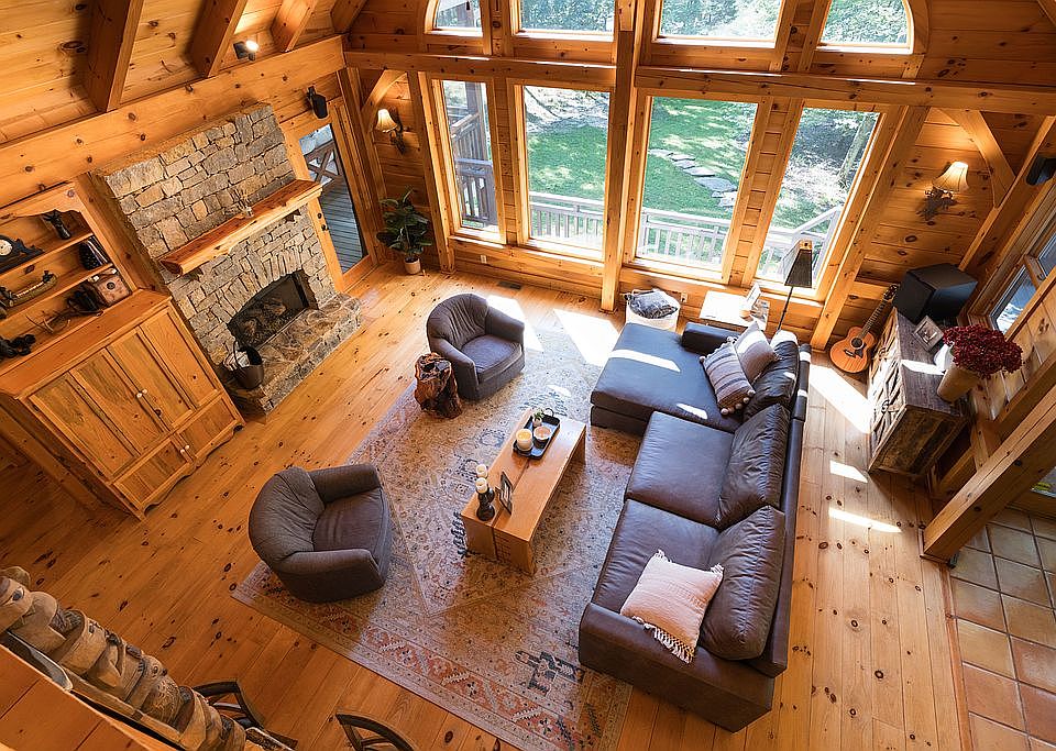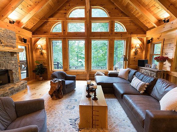 This furnished lakefront house sits on a wooded 6.8-acre lot in the 500-acre Deer Lake community. Three bedrooms and a sleeping loft provide mattresses for 12. Three full bathrooms paired with a tankless water heater mean your crew will never run out of hot water after a long day on the lake. The three fireplaces are located in the two great rooms and the 350-square-foot screened-in porch. The energy-efficient geothermal HVAC system is WiFi-enabled, allowing you to set the temperature hours before your arrival. The private dock can comfortably accommodate a 25-foot pontoon and provides storage for several kayaks and paddleboards. Remote work is no issue with fiber optic internet service and a Generac back-up generator.