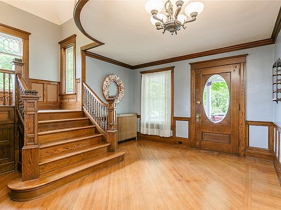 Welcome to the desirable village of Naples in the Finger Lakes region. This completely renovated grand colonial will check all the boxes! Chef's kitchen highlights 2022 refrigerator, dishwasher & microwave. Spacious island, granite counters & wine bar. 1st floor primary with ensuite offers a gas fireplace, semi-private deck with ramp & separate entrance is perfect for Airbnb potential or in-law suite. Original woodwork throughout, stained glass windows, hardwood flooring & three newer heating & cooling mini-splits. The newer permitted 3rd floor with high ceilings, half bath & sprinkler system is a standout! Fitness enthusiasts will love the basement gym, all equipment will stay. The exterior was completely painted 3 yrs ago & the front porch was redone within the last 5 yrs. Grounds highlight a fenced in backyard, detached garage & double wide paved driveway. Walking distance to all the village has to offer. Within minutes to Canandaigua Lake, wineries/breweries, 2 golf courses, Bristol Mountain, hiking & so much more! 6/10 OPEN HOUSE HAS BEEN CANCELED.