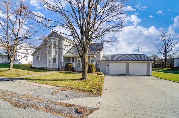 Super home in move in condition! If you are looking for a spacious home on a large lot in a village with a hometown feel then look no further! Boasting major updates over the years, this home features a large living room, oak kitchen with gas range and 1 year old dishwasher, dining room, amazing family room with french doors onto the rear wood deck, laundry room with tons of extra space for crafts or sewing or anything else you may need extra space for, master suite on the main level with a soaking tub and a standup shower, additional bathroom on the main level and 2 bedrooms upstairs. Metal roof, vinyl siding, whole house generator, heat pump, updated flooring, covered front porch, rear wood deck, updated wiring, updated concrete walks, hot water heater 2020, RO system. Additional 34x26 pole barn is AMAZING! Additional older barn on property. Seller is providing a home warranty if buyer requests. Storage shed at rear of property may be on the railroads property. Buyers should confirm the property requirements for financing, we believe it will qualify for all loan types but have not had it inspected for that purpose.