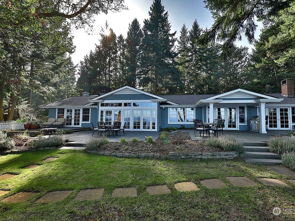 When form meets function! Thoughtfully redesigned home by famed architect Todd Soli with 220± feet of waterfront with direct views of majestic Mt. Baker, whales passing below and eagles in flight above. Single level luxury with beautiful wood floors throughout, art gallery hallway, a chef's kitchen with views and patio access from the four main living areas. Primary bedroom, living space, kitchen and office/den all have French doors that access the expansive patio area perfect for entertaining guests. The approx. 4.5 acres is fully fenced and provides great privacy as well as private beach access below for beach combing or tending your oyster beds. The barn boasts a shop, guest quarters, 2-stall parking and an upstairs bonus room.