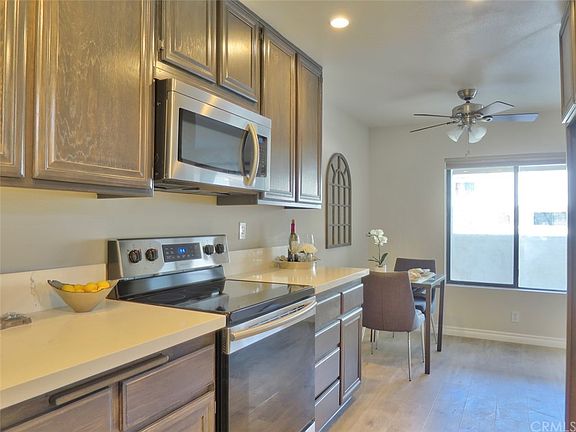 Move-in ready Orange Hills end-unit condo with dual master bedrooms and 2.5 baths with nearly 1700 sqft. The home has lots of natural light throughout and very open feeling with high ceilings as you walk in this home. Lots of upgrades including remodeled kitchen with custom quartz counter tops, new stainless-steel appliances, laminate wood flooring throughout, recessed lighting, new paint, newer AC and heater, newer water heater and so much more for you. There is inside laundry for you to enjoy. This home could be set up to be a 3 bedroom or office instead of extra family room. There is lots of storage and an attached 2 car garage. There is a large deck and concrete patio for BBQ and entertaining. Only one shared wall for this unit. HOA includes Pool, spa, water and trash.