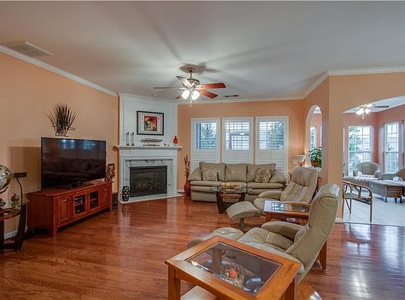 Beautiful Copper Ridge on oversized home site. Extra hardwood flooring, ceramic tile bath, corian kitchen counters. Private back yard. Oversized patio, covered screened in back porch. Irrigation system, Sunroom, 2 car garage & lots of shelving.