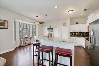 This home is priced to sell! Once you enter through the gated golf course community(golf optional) of Stoneybrook at Heritage Harbour, you'll want to call this home. Situated on an oversized corner lot and cul de sac street with pond views. Completely updated over the past few years, lots of natural light streams throughout the home. The soaring ceilings of the dining area great room and living room feature dual story windows and a dramatic long drop chandelier. French doors reveal an oversize 18 foot downstairs den featuring sliding door access to the pool and doubling as a 4th bedroom. Just off the pool and lanai you'll find the perfect entertainment space within the kitchen and family room combo. The kitchen area features stainless steel appliances, granite counter tops, and ample kitchen dinette space. Just off the kitchen you'll find a half bathroom with pool/lanai/yard access, a large laundry/mud-room with utility sink, and ample storage space under the stairs. Upstairs features the spacious master bedroom. 2 additional bedrooms buffered by a large carpeted loft area with 2 separate loft lookouts could be utilized as an office area. The master en suite features dual sinks, a large bath tub, private commode and a floor-to-ceiling tiled shower. Stepping into the backyard you'll find a caged pool with pond views and plenty of yard space to run about. Stoneybrook includes use of fitness center, Jr. Olympic pool/spa, tennis, sand volleyball, basketball, pickle ball, playground and much much more. Low Hoa.. Nearby shopping includes Costco, Publix and future plans for the all new Heritage Harbour Marketplace.