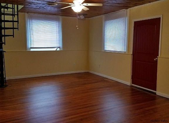 Early 20th century old School house converted in single family home. 2 bedrooms first floor and large extended upper floor which could be used as additional bedroom or family room. Dining room has built ins for dishes and collections. Rear of home has closed in jalousie windowed room. Nice size rear yard. Lots of potential for this recently redone home. A short walk to Rondout with fishing and kayaking. Nearby boat basins and great restaurants in downtown Kingston.