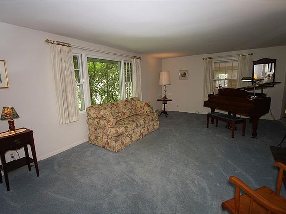 Live in the quiet, wooded cul de sac of Nob Hill in West Irondequoit. The master bedroom (11'4x15') has updated FULL bath with wall of closets and built-in dresser, hardwood floors. Large second bedroom (14'12x12'4) has 3 closets and hardwood floors. Living room overlooks back yard has wood burning fireplace. Eat-in kitchen plus formal dining room with tons of built-in cabinetry, shelving and built-in desk. Rear enclosed porch with tile floor could be 4 season room- opens to back deck. Large deck has pergola- very private. Huge finished basement with tons of storage adds square footage. Beautiful half acre lot overlooking the woods offers a serene and peaceful setting to enjoy year round.