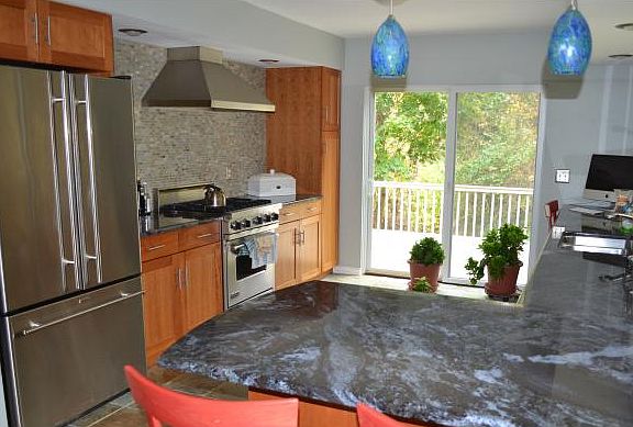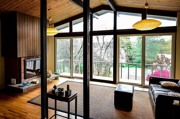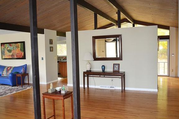 Updated Mid Century Modern Post and Beam 4BR plus office with add'l 2BR apt home !! Expansive living spaces with cathedral ceilings and walls of newly replaced Pella windows. LIght radiates from everywhere. Brick fireplace, main floor great room with adjacent family area. Large cherry kitchen with granite countertops and eating bar! New 3 zone central air & high efficiency furnace. Multiple decks to enjoy the views and partially wooded lot. Main level has three bedrooms, lower level 1 more BR plus a meda/office room & a beautiful 2 BR apt(perfect for income,guest suite or home business)!