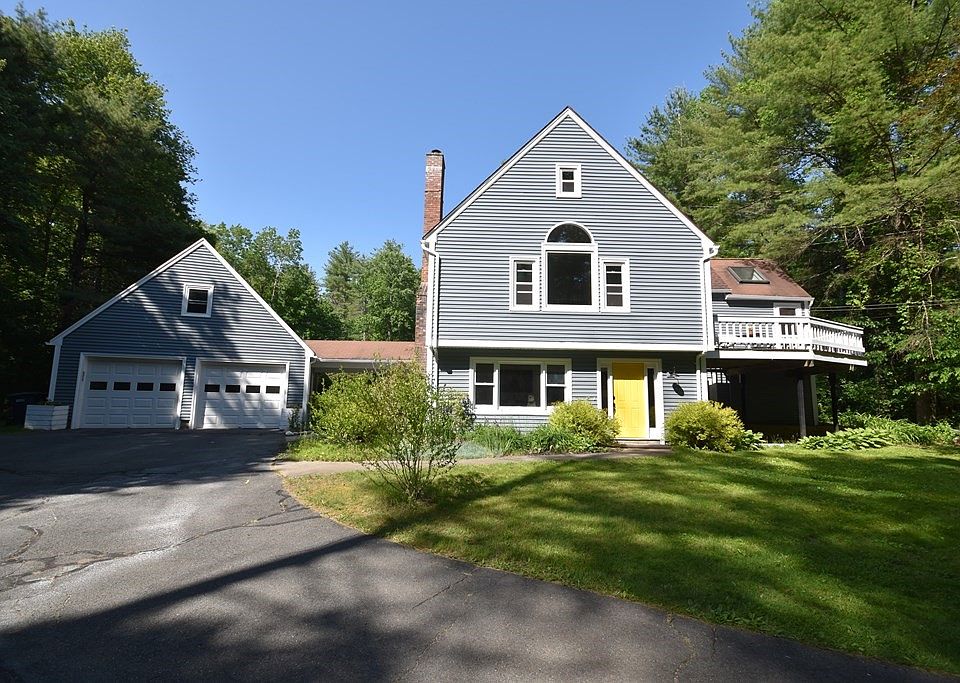 Beautiful Custom Contemporary home with nearly 3000 SF of living space on 3 floors. Filled with natural light, this home offers 3 BDs, 3.5 baths, a spacious kitchen with a dining area, formal DR, LR w/fireplace and cathedral ceiling, FR w/wood stove, home office or guest room, and large laundry/utility room. A breakfast deck off the kitchen and the large deck and pool in back are great for relaxing or entertaining. A bonus room over the 2 car garage has been totally finished with heat and electricity. The home is nicely sited on the 4+ acre lot, bordered by trees for privacy, with a large open yard for established gardens, fruit trees, and berry bushes. A haven for nature lovers and hikers with access in the backyard to conservation land and miles of trails. Many recent improvements include new siding, new windows, new gutters, 8 new mini-splits, and more. A list of renovations and improvements is attached. Come see this very special property to appreciate all it has to offer!