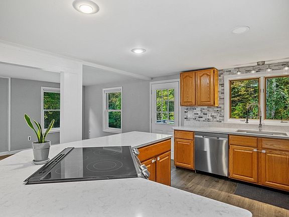 Welcome to your next dream space in a prime location! This 3 bed 2 bath 1950’s cape home boasts an array of features that will surely captivate you upon entering the space. With its generous yard and detached one-car garage, this property offers both space and convenience, all within the amazing and coveted community of Gilford. With 3.6 acres of resort-commercial zoning, you have endless possibilities to capitalize on this space, or enjoy it as it is! As you step inside, you'll instantly notice the LVP flooring and the oversized and open living/dining area, not to mention an updated kitchen! Older charm meets a sleek, modern design, complemented by gleaming quartz countertops, which provide an elegant and durable surface for all your culinary creations. With plenty of cabinet space and a functional layout, this kitchen is sure to be a focal point for all your gatherings. Conveniently located on the first floor, this house offers a primary suite with a completely updated full bath, laundry space, and bedroom. While the downstairs has been transformed, there is still an opportunity to update the second-story, where two generous sized bedrooms and a bonus/office space reside, plus another full bath! This house is the perfect opportunity to live comfortably while also being able to create your own masterpiece. Close proximity to Lake Winnipesaukee, Gunstock Mountain, Gilford town beach, and Ellacoya State Park. Seller is a licensed real estate agent.