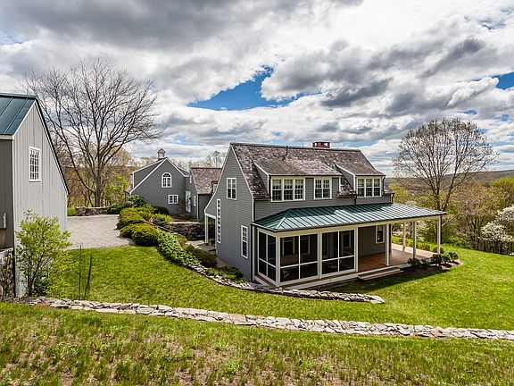 Contemporary Elegance is found in this impeccable home tucked away on 7 scenic and private acres in South Kent. The dramatic site begins on the approach passing protected farm fields, ponds, rock walls to a pristine view of rolling Connecticut Hills the house faces. Inside a charming blend of style and quiet luxury with many large windows that take advantage of the stunning setting. Designed with two wings with kitchen family area as the heart of this house - perfect for entertaining. At one end a lovely formal Living room large windows, a FPL, wood floor, combined with a Formal Dining Room with access to a screened porch and gardens. Above on the second level is the Master Suite accessed by it's own stair case with two dressing rooms and his /her baths. The focus of other wing of the house is a warm Library /Great room with vaulted ceiling, wood beams, Fireplace, bookcases, two story windows to admire the views. Near by a comfortable, casual, bonus room perfect as playroom, gym, or media room. Above this area on the upper level are 3 Guest bedrooms and an office. Every window has a pretty view! Dotted on the property is a heated gunite pool and many gardens to admire as well as a garden shed . There is a two car detached garage with loft area. The drive to this property is magical and completely world class from any direction. This home is for those seeking complete privacy and a romantic country home in superb condition allowing one to simply slow down and recharge.