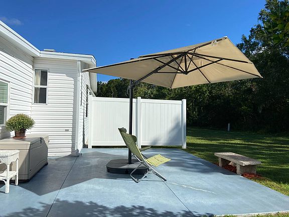 This is a mobile home for sale in a 55+ pet friendly community on a rented/leased lot. Welcome home to 1,118SF in this 1996 Palm Harbor with two bedrooms, two bathrooms, a front set lanai and a backyard patio oasis. The home comes unfurnished. The kitchen has ample countertop area for meal preparation, a food pantry, multiple upper and lower cabinets, laminate flooring, a skylight and a casual breakfast bar or service buffet. There is an indoor area hallway for the washer/dryer (not included) hookups and storage cabinets. The formal dining area is adjacent to the kitchen and has laminate flooring and cathedral ceilings. The living room has carpet, a ceiling fan and cathedral ceilings. There is a sliding glass door to the 12 x 14 lanai with a portable a/c. The master bedroom has carpet, a long, deep closet, a ceiling fan and and vaulted ceilings. The master bathroom has vinyl flooring, a linen closet, a single sink vanity and a walk in shower. The guest bedroom has carpet, a double closet, a ceiling fan and vaulted ceilings. The guest bathroom features a single sink vanity, vinyl flooring, a skylight, vaulted ceilings and a tub/shower combination. The home has tandem style parking for up to 3 cars. There is a shed on the carport for extra storage. The lot rent is $756 a month and includes lawn mowing, edging and blowing and all the community amenities below: Spa Whirlpool Horseshoes Tennis Court Shuffleboard Court Billiard Room Library Fitness Center The Gardens MHC is located within walking distance of shopping and other services. It's close to I-75 for easy access; and far enough way not to hear the it! The Gulf beaches are but 15 minutes west...