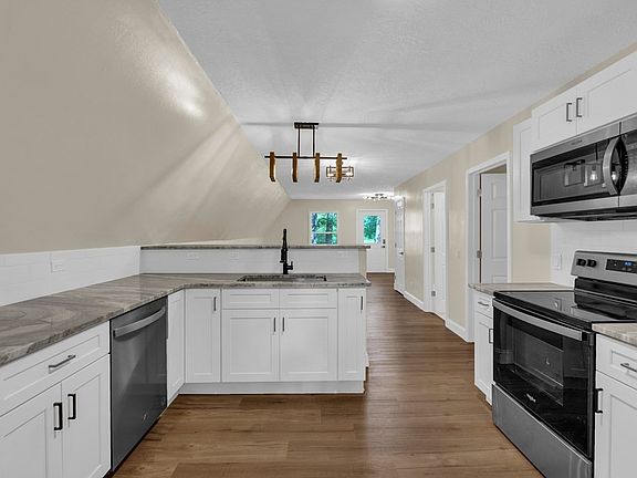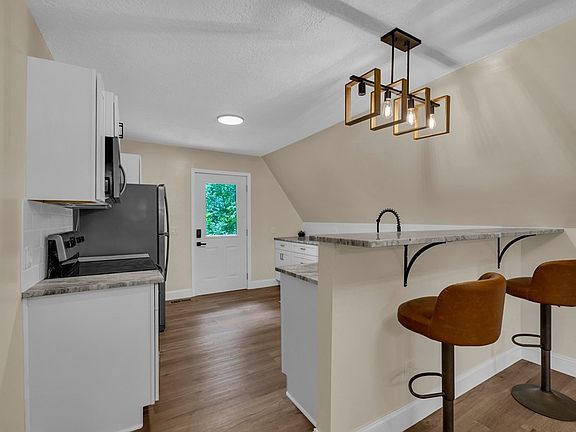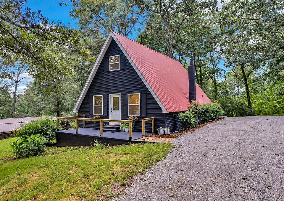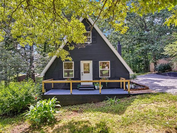 Completely renovated A-frame style home with 3 bedrooms, 2 bathrooms in a quiet country setting with mountain views. This move-in ready home features granite countertops, a dining bar, soft-close cabinets, and stainless steel appliances including electric range, dishwasher, and microwave. Interior upgrades include all new flooring, paint, lighting, windows, and doors. Both bathrooms offer tiled showers and new plumbing fixtures. The spacious upper level includes a private walk-out balcony to have your morning coffee or simply getaway. Enjoy outdoor living on the covered back deck or relax on the front concrete patio. Conveniently located just minutes from town with privacy and charm.