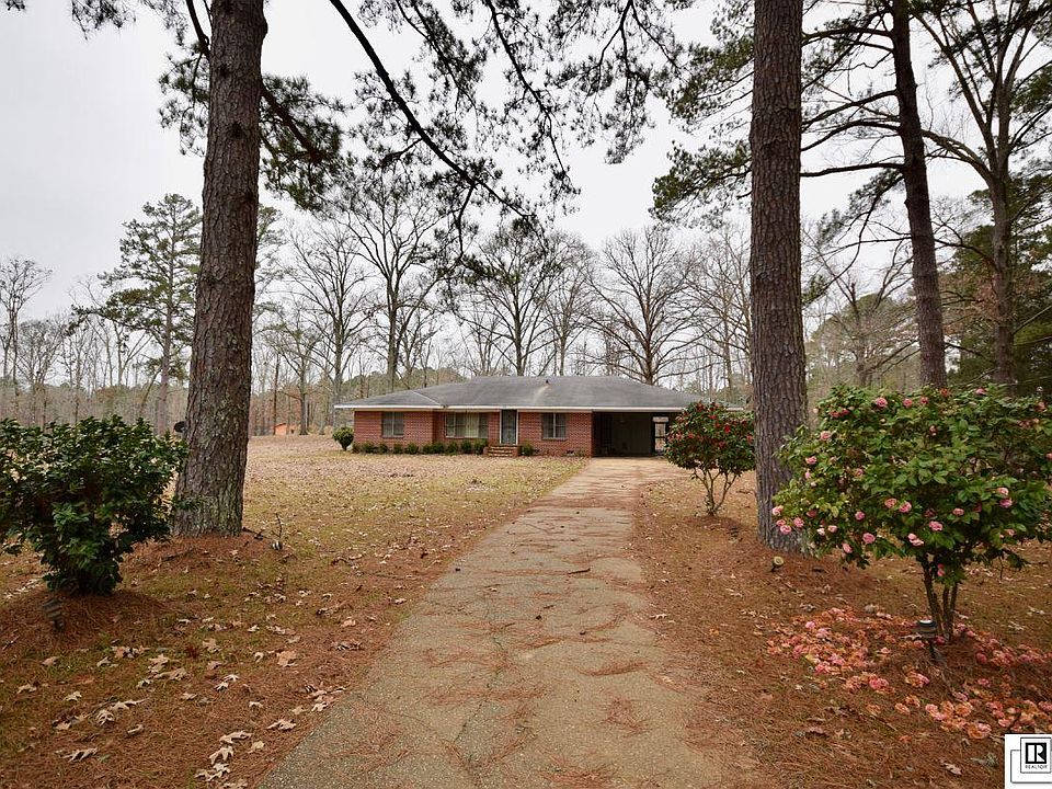 This spacious home is situated on approximately 2 +\- acres with a beautiful view of the neighboring pond. The back patio has a built in cooking area and is fenced for your furry friends. Located just off the patio and laundry room is one of the updated bathrooms with a full shower and large closet. The 2 storage buildings and 2 storage rooms off the carport are great attributes. The kitchen offers plenty of counter space and cabinets. There is a breakfast area and separate dining room that has beautiful hardwood floors. The living room has a wood burning fireplace with large windows. The current master bedroom has hardwood flooring and a beautiful brick fireplace, this room been used as a formal living room in the past. The main bathroom offers a bonus makeup vanity and extra storage. The laundry room offers a large counter space with cabinets for extra storage. Call a REALTOR today to schedule a showing..