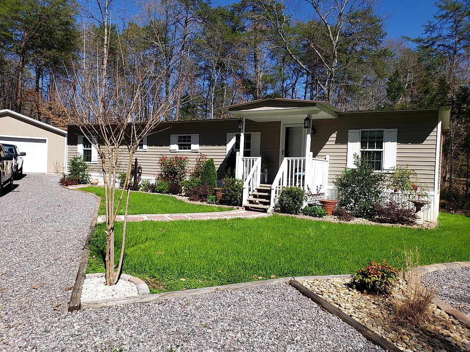 Unique opportunity to live on over 1.3 acres of land in a lovingly renovated mobile home with bedroom addition on side. HUGE Detached Garage 30'' X 24'. Extremely private lot located on a Cul-De-Sac in a quiet neighborhood. Fresh Vinyl Siding This home features a beautiful custom deck, Lush Green Lawn and a huge yard in a wooded private environment. New Metal Roof in 2017