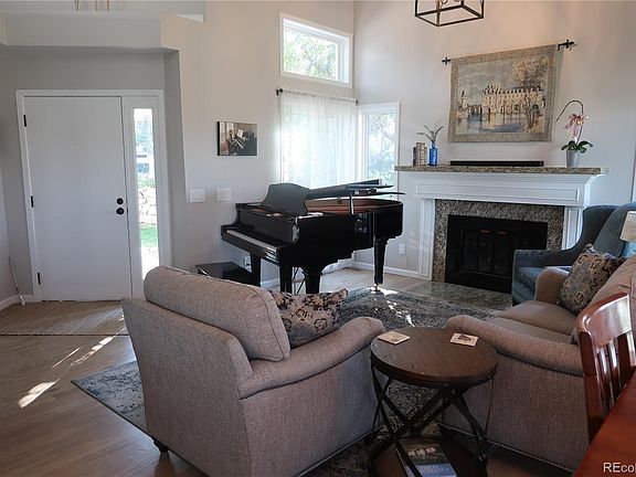 This thoroughly upgraded and remodeled Townhome sits on Plum Creek Golf Course 1st Hole, with mountain views and lots of light. Open living room space with fireplace and new mantel. Also features newly refinished hardwood floors throughout main floor, flows nicely to the totally remodeled kitchen. New soft close cabinets, Stainless Steal appliances including gas range, beautifully tiled backsplash and eat in nook. Opens to covered deck, with a retractable awning, to enjoy the gorgeous views year round. Upstairs has a beautiful private master bedroom with walk in closet, updated bathroom, tile floors, slab granite countertop. Enjoy the private balcony with your morning coffee and beautiful views. Second En Suite bedroom is generously sized and has full upgraded bathroom also with tile floors and granite countertop. New carpet sweeps through stairway to the upstairs, with all new metal spindles and wood rail. Second bedroom has an additional balcony. New lighting throughout home, with fresh modern fixtures. Basement is finished with garden level windows. Possible uses of basement include 3rd bedroom and bathroom, home office or work out space. Many possibilities to make it your own. Two car garage has installed cabinets, work surfaces and tub sink, for messy cleanups. Located on a quiet cul-de-sac, but conveniently close to shopping and I-25.