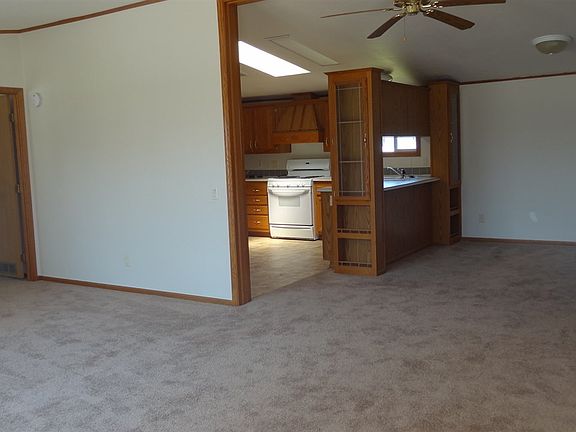 Super-sized! Over 1700 sq ft! Light & spacious/Shows like NEW! Room for your family to spread out! Open concept floor plan w/vaulted ceilings, split bedrooms.Master suite is huge, on-suite bath has soaking tub & shower. Skylights wash natural light over baths & kitchen. Extra big living room has nice sized windows.Patio door from Great Room opens to back deck for relaxing. NEW carpet, paint and much more! Large lot at the end of a culdesac - plenty of off street parking, and your own covered carport & shed