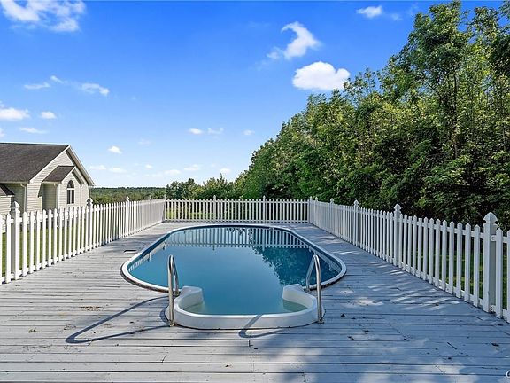 This beautiful ranch home situate on 6.5 acres is located within walking distance to Lake Ontario! As you drive up the driveway you will feel the tranquility this home offers before even entering. The large mudroom greets you as you enter. The eat in kitchen with breakfast bar and large pantry boasts stainless steel appliances, beautiful corian countertops and tile floors. The sliding glass doors take you out to an extraordinary covered back patio. The back yard is complete with an in-ground pool and pool house. The great room, with stone fireplace, has cathedral ceilings, skylights and window seats looking out at the Deer Creek Wildlife Management across the road. The formal dining room is great for hosting gatherings. The primary bedroom includes his and her walk in closets, full bathroom with soaker tub, standup shower and double sinks. The fully finished basement is perfect for media room, game room or whatever else you can think of, along with plenty of storage. 2 car attached and 1 car detached garage. 50 amp RV hookup service for guests who come to visit. So many updates! Centrally located near Watertown, Syracuse and Oswego. A must see!! 2025-07-14