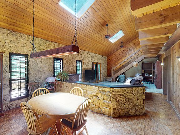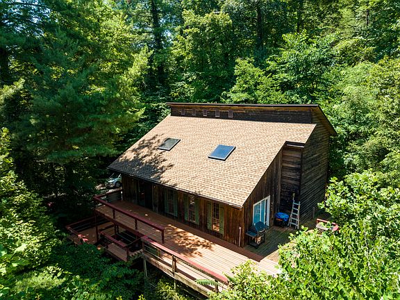 MOTIVATED SELLERS, bring an offer! If you are looking for a contemporary home with pioneer charm, then this home is for you! Just minutes from historic downtown Elizabethton but nestled on about 1.22 acres of forested land that leads one to the feeling of privacy, but convenient to town amenities. This home is a must see with it true to rustic design by bringing the outdoors in, creating a warm and inviting space. Touches of organic elements throughout that include stone, tongue and groove wood, exposed beams, skylights, and elongated windows maximizing the unobstructed view of the surrounding woodlands. Unique design elements throughout add to the ruggedness appeal and are waiting for your personal touches. You will be able to enjoy East Tennessee's four seasons and changing of the leaves from your wrap around terraced decking. This charming home offers extra storage, with 3 bedrooms and 1.5 baths. The main living level has an open floor plan concept with elevated ceilings, 1 bedroom, a full bathroom, a quaint kitchen and separate dining area. On the top floor you will find a lofted hall overlooking the main living level with 2 bedrooms and a half bath. One bedroom is used as the primary suite with a 2 person jetted tub. On the lowest level you will find a full basement partially finished with oversize single garage access and room for a shop. In addition to the mature landscape on this property this home offers a shed, chicken coup, and greenhouse for those wishing to hone their gardening skills. This home is a must see to appreciate and make it yours. Information taken by 3rd party resources. Information deemed reliable but not guaranteed. Buyers to verify all information.