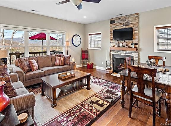 This beautiful 2 bedroom, 2 bath condo is located in the prestigious gated community of Vista at Bill's Mountain. This open floor plan home has hardwood floors in the main living areas. The greatroom features an unvented gas fireplace with stone surround and opens up to a deck with MAGNIFICENT mountain views! The kitchen boasts granite countertops, breakfast bar, stainless appliances and pantry. Both bedrooms are carpeted with walk in closets. Master Bedroom's en suite bathroom has tiled floors, granite countertops and large tiled shower. The neighborhood clubhouse offers unparalleled mountain views to enjoy as you use the fitness center, swimming pool or spending time upstairs in the clubhouse enjoying the good life. The neighborhood also has tennis courts, walking trails and a well stocked pond. The Lake Lure beach and Chimney Rock Village and State Park are about 15 minutes away. Enjoy the relaxation of maintenance free living full time or as a second home getaway.