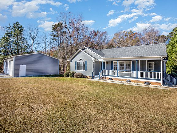 Adorable ranch with wrap around front porch on nearly 1.5 private acres in popular Cleveland community of Clayton. Roomy kitchen with stainless appliances and ample cabinets with removable eating/storage bar. Large family room features cathedral ceiling, gas log fireplace and lots of windows. The primary bedroom boasts of remodeled bath with garden tub, separate shower and dual vanity, walk in closet and vaulted ceiling. Do not missed the 3 bay wired workshop/garage that the owner added. Perfect for hobbies, storing toys , cars and lawn equipment. If you want country living only a few minutes to shopping and major highways.