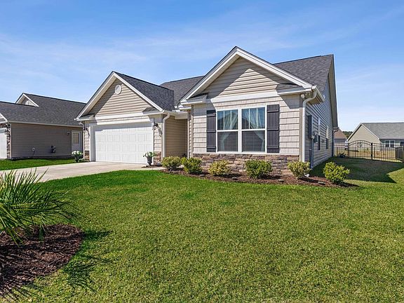 PRICED REDUCED!!  Looking to move to the Myrtle Beach area, but you don't want to pay Myrtle Beach prices?  Then this is the home for you.  Unforeseen circumstances are responsible for the sellers move. Their loss IS your GAIN!  Just one year NEW this home shows like a model.  It's in a natural gas community and the seller added many upgrades such as black aluminum fence, gutters, screened back patio, blinds & window treatments and a refrigerator that stays. This 3/2 split floorplan with soaring cathedral ceilings in the living area, dining area, the primary & 2nd bedrooms. Lots of natural sunlight makes this a "HAPPY" home.  Eat in kitchen area with breakfast bar.  Luxury vinyl plank in main living areas, carpet in bedrooms & beautiful 12x24 tile in kitchen and wet areas.  Parking for 4 cars in the driveway plus 2 in the garage.  Full lawn irrigation. Storage sheds that match your home are allowed. Make your appointment today for a personal or virtual showing, you'll be glad you did.  Seller is offering an incentive to buyers for closing costs on a ratified contract.