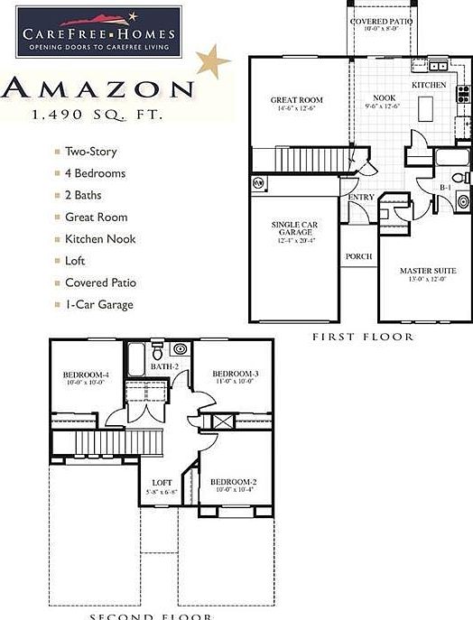 Carefree Homes new beautiful 4 bedroom floor plan "The Amazon", Master bedroom downstairs with a walk-in closet. Kitchen open to Great room and dining area. Three bedrooms, loft, full bath and utility room upstairs.