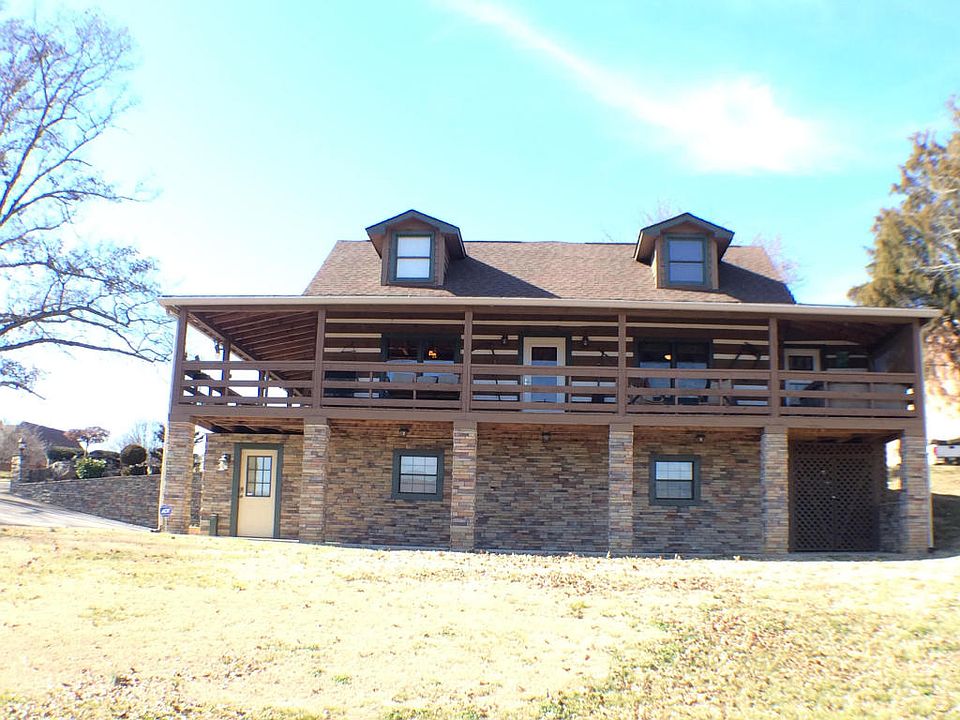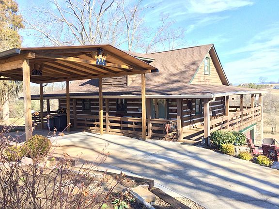 Enjoy anytime of day by rocking on the nearly 1100 Sqf of covered wrap around porch or by soaking in the spacious hot tub. Freshly updated it is perfect for anyone wanting to enjoy the cabin life with no compromise, this 3 bedroom 3 bathroom log cabin, master BR on main with large walk in shower &W&D Connection, Basement Rec. Room, & pavilion that can accommodate up to 52' RV or whatever you like. This is a Beautiful cabin constructed of locally milled rough cut logs this is a must see!