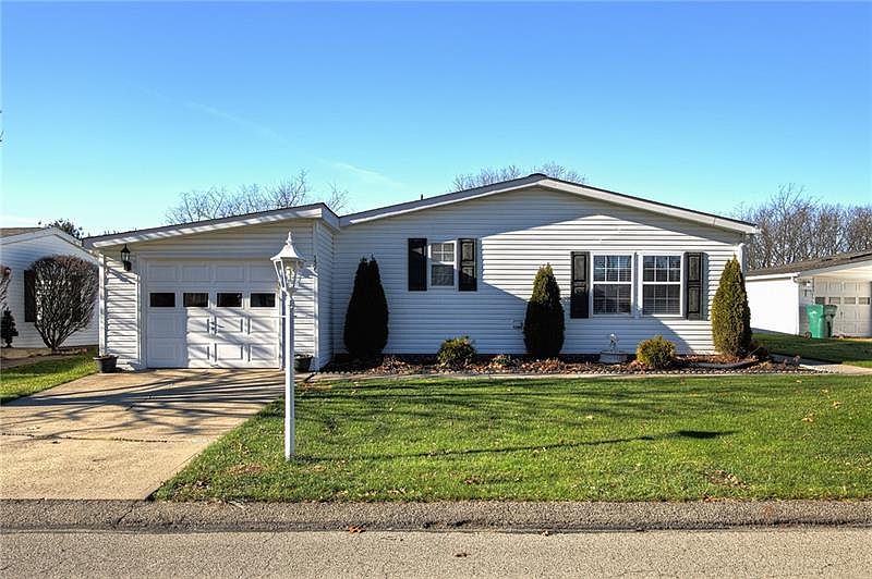 One level living in the desirable community of Rock Lake. We offer 3 Bedrooms and 2 Full Bathrooms with this Shultz build home (only one in community). Enjoy being outdoors without being outside, this home offers an enclosed back patio and a separate covered patio. This is one of the largest lots with woods behind the home. Spacious bedrooms with plenty of closet storage in the walk in closets. Deep one car garage with plenty of room for additional parking, storage and access to the large utility room. The spacious kitchen offers plenty of storage and workspace. Access to both patios from the dining room. New skylights in bathrooms and Kitchen. 5 minutes to Zelienople, 15 minutes to Cranberry. HOA includes water, sewer, and maintenance of the common grounds & pond. There's a clubhouse with a library, pool table, small workout area, and a party room. There's a clubhouse with a library, pool table, small workout area, and a party room.