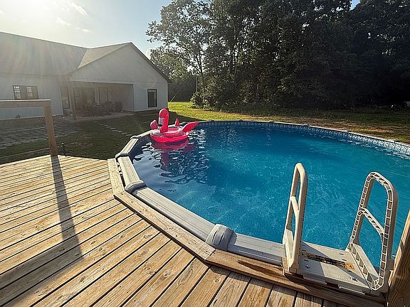 Are you ready to enjoy country living near Eleven Point River only miles from Pocahontas? This quality 3 bedroom, 2.5 bathroom home was completed in October 2022 and sets on 20.8 acres and includes two creeks and a spring. Boasting a large front porch, covered back porch, and an above ground pool with deck, there is no shortage of room to enjoy the outdoors and endless starry nights. The 8 foot double front doors opening into an open floor plan with 15 ft vaulted ceilings with wood beams in the living room and open sight lines throughout the kitchen, dining room, and living room. The living room has a gas fireplace flanked by custom shelves and cabinetry and insert for a 75” TV. The kitchen is a chef’s dream with a 36” gas range, double ovens, ample soft close cabinetry, a walk in pantry, and large 9’x4’ island with a prep sink. Oversized windows with custom blinds and 9 foot ceilings throughout create an abundance of natural light throughout the home. The master suite has French doors opening to the backyard and a luxurious bathroom with a 7’x4’ spa like shower, deep soaking tub, and large double vanity with LED anti-fog mirrors. All bedrooms have custom closet systems. In the garage, you will find a water softener, whole home filtration system, gas tankless water heater, and gas furnace. Utilities include Clay County Electric/Connect, Summit natural gas, and Lawrence County Rural Water. The living room has French doors opening to a 12x18 covered porch and overlooks a 24’x24’ above ground pool from Aloha Pools and Spa. This home was designed with a longevity mindset, so higher quality finishes like solid wood custom cabinetry and doors, quartz countertops, metal board and batten siding with brick skirting, along with many extras make this home stand out.